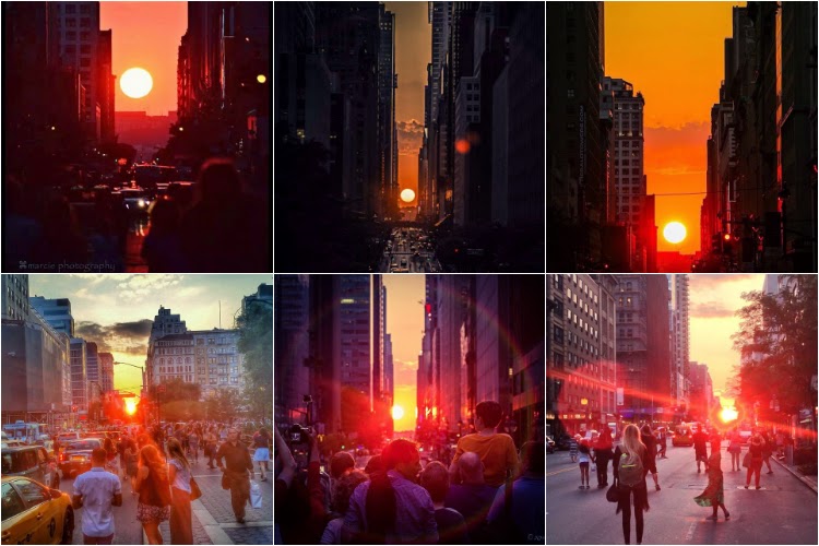 Manhattanhenge est un événement se produisant deux fois par an, vers le 28 mai et le 12 juillet, deux dates de part et d'autre du solstice d'été. Le soleil couchant s'aligne avec les principales rues orientées Est-Ouest de Manhattan, à New York (particulièrement visible dans les 14e, 23e, 34e et 42e rues).